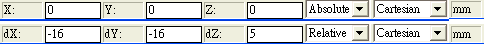 按下Cylinder icon后,按Tab键移到画面下方的坐标区(或用光标移),先输入圆心坐标,再输入相对坐标(高与半径),然后会自动跳出properties设定窗。