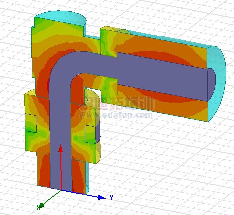 90°同轴连接器的HFSS设计模型。HFSS设计模型图如下: