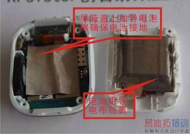 屏蔽盖上加导电泡棉确保电池接地