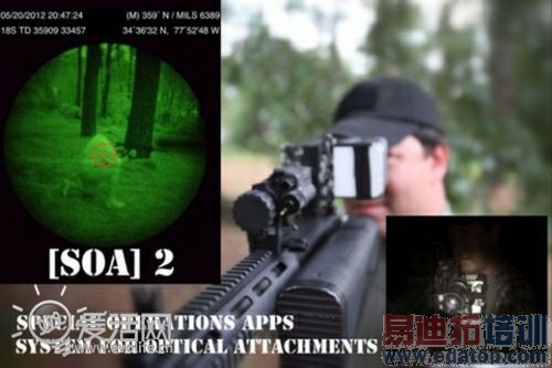 当我们还在往iPad上装SmartCover时,军队家伙们已经走得更远了。一间名为Special Operations Apps的美国公司公布了他们新开发的可用于平板以及智能手机的附件,大概你很难想象到这会是什么——装在摄像头上的军用光学仪器套件,名为[SOA]2。