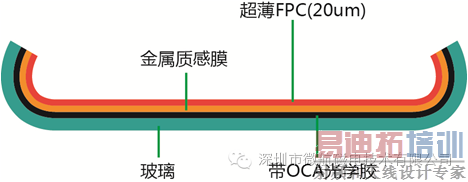 当使用的玻璃是透明的情况下,天线就不适合直接做在玻璃上,制造商往往会给玻璃内侧做一层不透明装饰,这种情况就比较适合在装饰膜上覆盖上一层天线薄膜,也可布上其他电路。将超薄FPC贴在PET膜上。