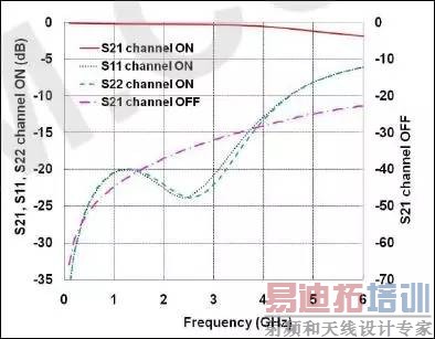 3)隔离度高,38dB@2GHz,30dB@4GHz,可解决通道之间的干扰