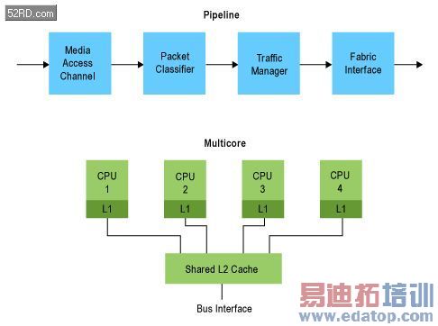 一种密切相关的方法是建立功能级模块流水线,这是数据包处理应用中目前常用的方法。在这种方法中,数据通过处理器链,每一处理器都对数据进行某一特殊的功能处理。这类流水线与具体应用密切相关,如果功能与状态或者数据相关,在执行过程中,设计人员尝试改变流水线的工作时,设计会变得非常复杂。