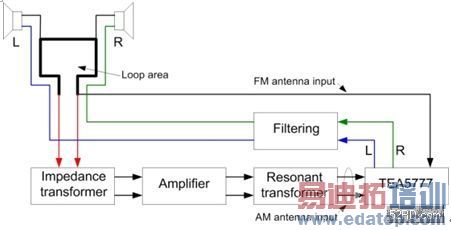 而耳机天线与TEA5777匹配时的误差产生的性能损失是如此之小,以至于该系统无需任何校准。该耳机属于宽带接收天线类型。选择接收哪部分射频频段可在稍后阶段决定。本例中,选择在谐振阶段进行。放大器将其能量注入到谐振变压器。