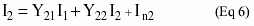 In an alternate representation of the noisy two-port network (Figure 2), the external sources are the current noise sources In1 and In2. Equations 5 and 6 represent the noise-free two-port network: