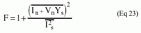 Equations 9 and 10 show that there is no simple way to evaluate Vn and In in Figure 3, using open- and short-circuit measurements. From a practical point of view, those values (Vn and In) can be expressed in terms of noise voltages Vn1 and Vn2 in Figure 1b (which require only open-circuit measurements).