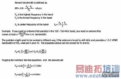 Bandwidth can be defined in terms of radiation patterns or VSWR/reflected power. The definition used in this book is based on VSWR. Bandwidth is often expressed in terms of percent bandwidth, because the percent bandwidth is constant relative to frequency. If bandwidth is expressed in absolute units of frequency, for example MHz, the bandwidth is then different depending upon whether the frequencies in question are near 150, 450, or 825 MHz.