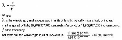 We often refer to antenna size relative to wavelength. For example: a half-wave dipole, which is approximately a half-wavelength long. Wavelength is the distance a radio wave will travel during one cycle. The formula for wavelength is: