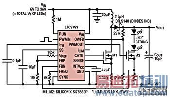 (图一) LTC3783整合MOSFET驱动器,提供高功率给一群聚LED