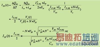 由上述分析可得知在每个周期是固定的,而是可变的。方法二是将方法一做了一些假设而简化,将二次侧谐振电流线性化,假设很小,所以,并且假设每个切换周期输出电压的变化很小,故公式二可简化得(公式五)