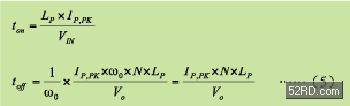由动作原理可得知在MOSFET导通时,输入电压会对变压器一次侧电感充电,在每次导通期间储存在一次侧电感的电荷为(公式七)。