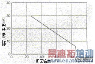 有关白光LED的可靠性,基本上就是需设法避免顺向电流超过白光LED的绝对最大设计值(定格值)。如图2所示白光LED的定格最大顺向电流为30mA,随着周围温度的上升,容许顺向电流则持续衰减,如果周围温度为500C的话,通常顺向电流就不能超过20mA。此外利用定电压的驱动方式不易控制流入LED的电流值,因此无法维持LED的可靠性。