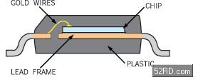 SO-8 封装尺寸最近受到了广泛的关注。尽管其发明者从未打算将它用作功率器件封装,但是,SO-8的原始结构几乎并未改变其作为IC封装的功能;管芯是通过丝焊连接到内部引线框架上的,整个器件被压模成形(图 2)。你可利用封装的8根引线进行连接,8根引线也是器件热量散发到电路板的主要通道。各种各样的新型封装格式都由同一基本外形派生来的,其目的都是为了提高电导率与热导率。
