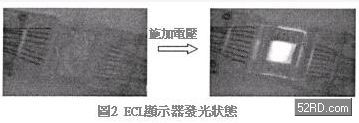 有机EL显示器若与传统设有背光照明模组的液晶显示器相比较,具有轻巧、主动发光、大视角、结构简单、反应速度快、高对比、低电力消耗等特点,不过有机EL显示器却面临使用寿命较短,仅能作直流驱动而且电极会堆积不纯物等结构性课题;为迴避这些问题,国外业者积极开发可作交流与直流驱动的ECL显示器,该显示器由厚度只有数μm的发光溶液构成(如图2所示),一旦对发光溶液施加数V电压,电气化学发光(ECL)显示器就能够发光。