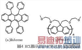 图4是有关ECL显示器的Rubrene与Polyfluorene化合物,亦即PBDOHF<Poly〔9