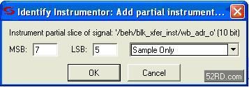 Identify RTL Debugger可提供个别节点、汇流排以及部份汇流排的信号量测。部份汇流排区段的定义以下面图二的选单来定义,其中指定了要取样或是作为触发点的汇流排组。