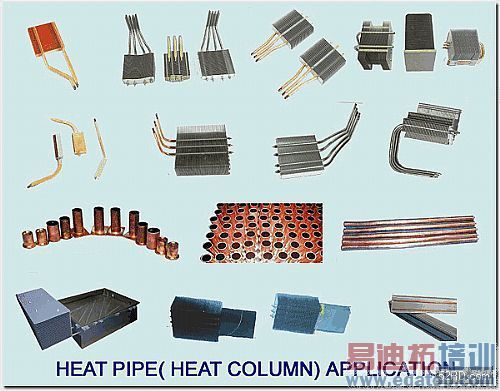▲各种热导管(Heat Pipe)、热柱(Heat Column)的应用型态,管径从3mm∼38mm,毛细结构有网目式或烧结(粉末)式,长度从3cm到15cm。
