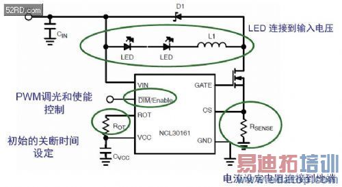 图2:NCL30161典型应用降压LED驱动器