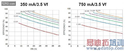 图12是NCL30160连接不同LED数和不同电流时的能效曲线。可以看到,其能效是非常高的。