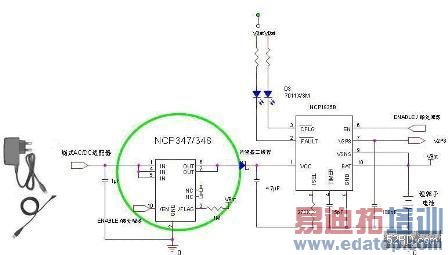 | 图5:集成式OVP解决方案NCP348的应用电路示意图。 |