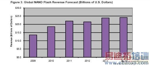 2010年NAND闪存销售额创下最高纪录,增长38%。预计今年销售额将达到220亿美元,比2010年的187亿美元增长18%。而NAND闪存比特出货量增长幅度更大,预计2011年增长72%,达到193亿GB。