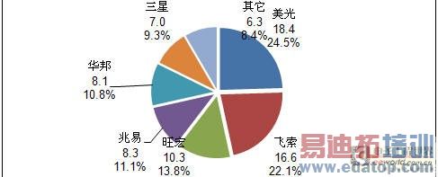 图3 2012年中国NOR Flash市场品牌结构(按销售额,单位:亿元)