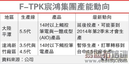 达鸿表示,触控笔电需求不如预期,目前供给远大于需求,因此暂停新竹3.5代及4.5代厂区生产,把订单集中到生产效率较高的台中新厂区生产,以降低成本,提升营运绩效。