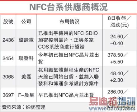 【NFC需求夯 联发科赚到】台湾NFC芯片供应商NFC元件供应商认为,中国移动与一卡通公司合作研发的NFC手机,已于7月在北京推出,中国联通加入战局后,大陆两大电信运营商可望成为NFC和手机钱包市场最重要的推手。晨星,联发科今年初推出NFC芯片,当市场逐渐成长将有助提高芯片出货量http://t.cn/zR47Ij4