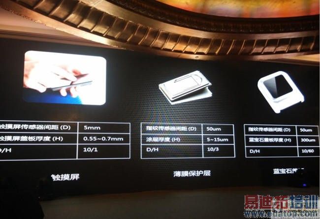虽然原理与普通电容触控Ic一样,但是要求的灵敏度与信噪比却是天壤之别。“普通触控时要识别的间距是5mm,而指纹要识别的间距是50um。并且,我们在传感器上还加上了防刮的蓝宝石盖板,这更增加了对灵敏度的要求。”龙华解释。他称有些厂商没有采用蓝宝石盖板,而是采用了涂层来防护,这样相对简单,因为涂层的厚度仅为5-15um,而蓝宝石的厚度有300um。