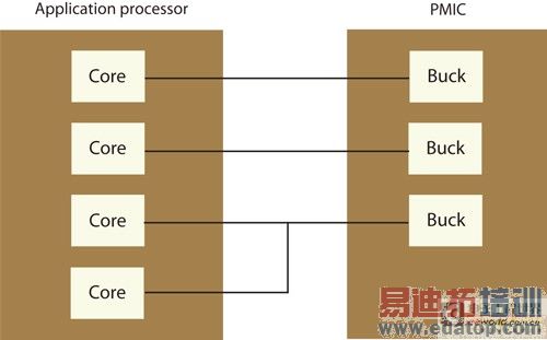另外一项促成多核心系统的电源架构变革的重要因素,在于40奈米(nm)、32奈米及最近28奈米的生产制程技术是否已获得广泛采用。这些连接至每一个稳压器的输入端,无法支援5伏特(V)的电池电压,因为较小的互补式金属氧化物半导体(CMOS)尺寸需要较低的工作电压,才能有效地降低可被应用的最大电压,因此现在需要将电源管理功能从应用处理器移出,放到独立的装置上。