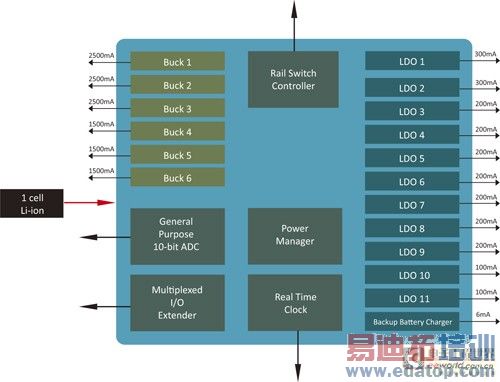 图2 电源供应及管理功能皆整合在这颗电源管理晶片之中。