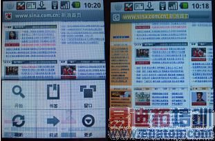 网络功能是Android系统的一大优势,内置的浏览器基于Webkit核心,载入页面速度非常之快。使用WiFi打开新浪中国首页同桌面电脑没有什么两样。整体页面可以比较完整地还原出来。网页浏览时,放大/缩小操作和多页面浏览是非常实用的两项功能。