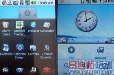 Android平台程序列表框,向上弹出的抽屉式设计。在程序列表中,除了闹钟、浏览器、拍照、联系人、拨号等常用功能快捷方式,其它就是Google的大量应用,比如:Email、Push mail等,除此之外,还可以在网上下载大量第三方应用软件。