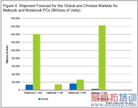 图4所示为iSuppli公司对全球和中国上网本及笔记本市场的预测。