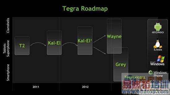 此外,此前公布的Tegra路线图中出现的Tegra 3强化版Kal-El+,有消息指出这是一款专为基于ARM的Windows 8平板设计的SoC,默认频率要比现在的Tegra 3高。