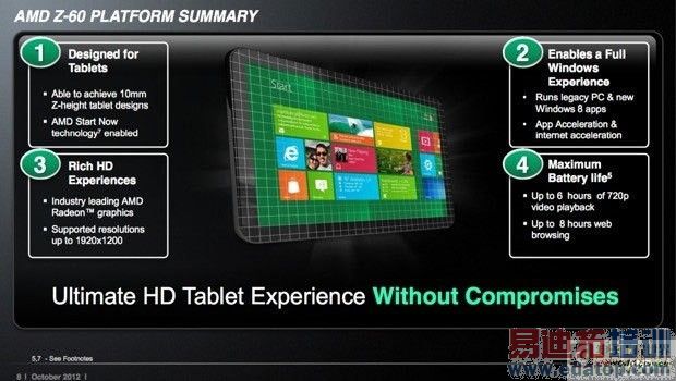 香港时间10月10日晚间消息,在Windows 8即将发布之际,英特尔竞争对手AMD周一发布了平板电脑处理器Z-60。