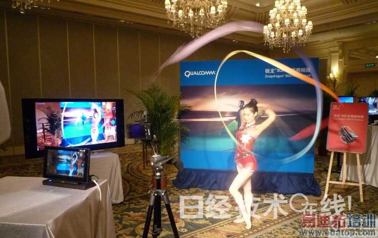 关于配备骁龙800的移动产品用户体验,高通强调该IC能够进行4K分辨率的解码和编码工作。该IC最大支持3840像素×2160像素的分辨率,“能够实现超高清设备”(高通中国区产品营销总监王宇飞)。会场上让女演员挥动飘带舞蹈,高通利用配备骁龙800的智能手机将现场拍下,然后在4K分辨率的大屏幕上进行了放映演示(图5)。(记者:小岛 郁太郎,Tech-On!)