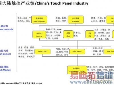 一张图看懂中国大陆触控产业链:触控是智能终端产业链中最热门/技术变化最快领域,并创造了莱宝和欧菲等A股神股。目前中国大陆出货量1KK/月以上触控模组厂约10-15家,10-50万/月约50家。这一领域正发生各种技术/各类厂商全面开战、整合洗牌、技术创新。感谢Ben Chan/晓峰/徐老师等业界朋友帮忙做图。