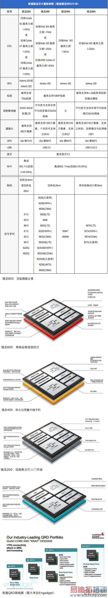 【一张图弄清 高通骁龙芯片最新产品线简介】在2013年初的CES展会上,高通发布了多款新型号骁龙处理器,同时宣布骁龙处理器重组为骁龙800/600/400/200这四个全新的系列,处理器相比前一代产品在性能上有大幅度的提升,以骁龙800和骁龙600这两个系列的芯片最明显http://t.cn/8khFTsj