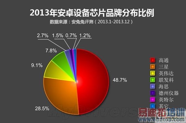 2013年安兔兔评测安卓设备芯片品牌分布比例