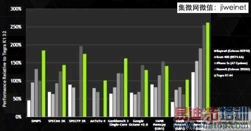 Nvidia 展示的数据为x86架构处理器与32位元ARM处理器的性能测试比较