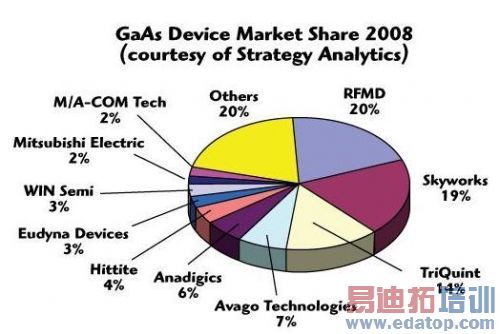 对此,深圳广迪克科技有限公司总经理徐杰表示:“如果采用同样的工艺节点,CMOS PA能应用的频率比砷化镓PA要低得多。”作为新兴的射频PA供应商,广迪克的砷化镓PA已经开始大量出货,据称在效率、最高功率等方面都达到了国际同类产品的水平。为了把握PA的技术发展趋势,2009年末徐杰专程前往美国考察CMOS PA技术发展情况,得出的结论是近期CMOS PA不会成为主流,因此更坚定了开发砷化镓PA的决心。
