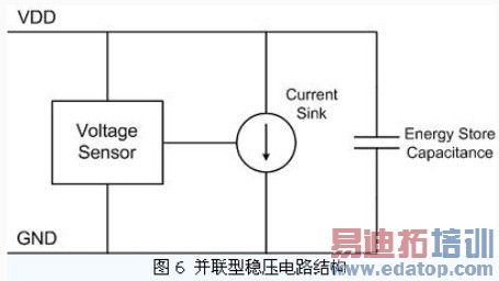 这种串联型稳压电路可以输出较为准确的电源电压,但是由于M1 管串联在未稳压电源与稳压电源之间,在负载电流较大时,M1 管上的压降会造成较高的功耗损失。因此,这种电路结构一般应用于功耗较小的标签电路中。