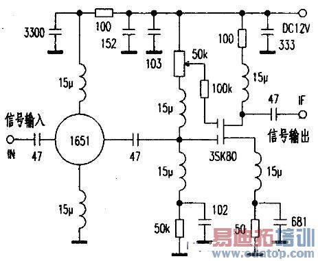 五、集成μPCI651和双栅管3SK80的联含二级信号放大电路