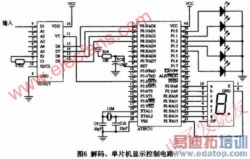 VD5027解码正确时,17管脚 输出高电平,4位数据由管脚10、11、12、13输出。因此单片机设置为中断模式,VD5027的17管脚经反向后接在单片机的中断0入口处。主程序为 休眠等待状态,当有应答器且解码正确时,响应中断服务子程序,显示相应的信息。其流程如图9所示。