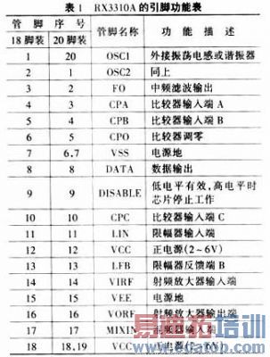 RX3310A有18脚和20脚两种封装形式,两种封装的管脚号和对应功能如表1所列。