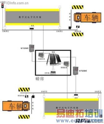 在每辆汽车的适当位置安装一块与车号已建立一一对应关系的电子标签,当车辆通过天线的有效查询射频波束时,电子车牌接收由天线发出的定向查询射频信号,并将自身储存的电子信息调制并反射回天线,从而使读卡器自动读取电子车牌信息,根据读取信息和称重情况指挥车辆按序上下秤,实现车辆的自动识别称重及称重数据管理。