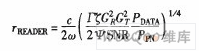 超高频RFID读写器接收机工作时也需要发射机发出无调制的载波.接收机接收到的包括标签反射信号、天线噪声、环境反射、发射机直接耦合,以及接收 机自身的噪声等。在标签能获得足够工作能量的前提下,读写器的工作距离主要取决于标签反向散射信号在读写器的解调输出能否满足最低信噪比要求.根据文献 [3],可用下面的公式来标示读写器决定的最大工作距离: