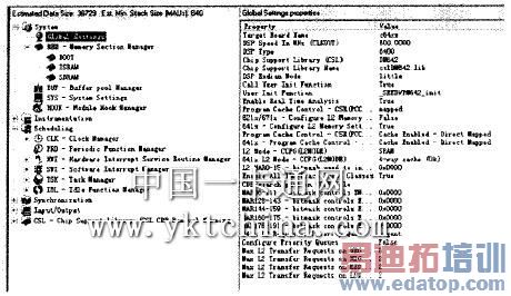 具体地说,CDB文件的主要配置内容有以下几部分。系统部分:Global Settings体现系统所用处理器型号及其各种参数特性;MEM体现系统的程序和代码的放置位置以及占用空间的大小。调度部分:TSK—Task Manager主要定义用户定义任务及系统后台线程所调用的子函数,任务的优先级以及其存放位置和堆栈大小的设置情况。输入输出部分:定义视频各个输入输出端口如何实现与片级支持库CSL的链接,从而实现微驱动和参数传递。