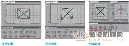 增益失衡:增益失衡比较了 I 信号和 Q 信号的增益,以 dB 表示。在星座图中,能够很好地查看 IQ 增益失衡的效应 ( 星座图的宽度与高度不匹配 )。